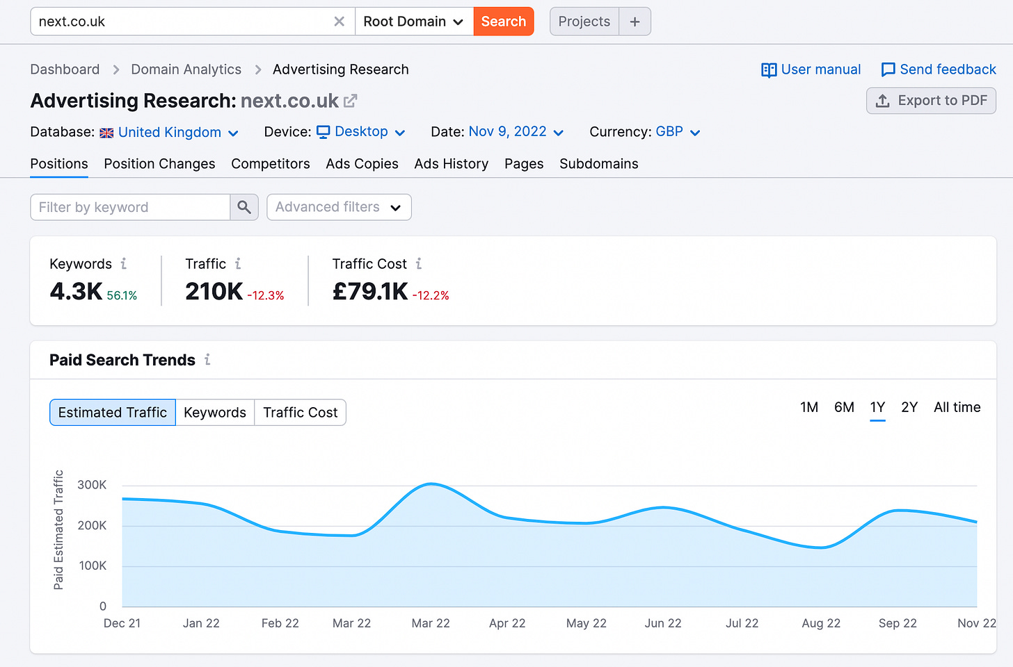 Next currently spends £79K ($90K) per month on paid search and is getting 210K visitors. This works out at about 37p ($0.43) per click. This means just the organic traffic from made.com could be worth more than £8.5 million to Next in the first year.