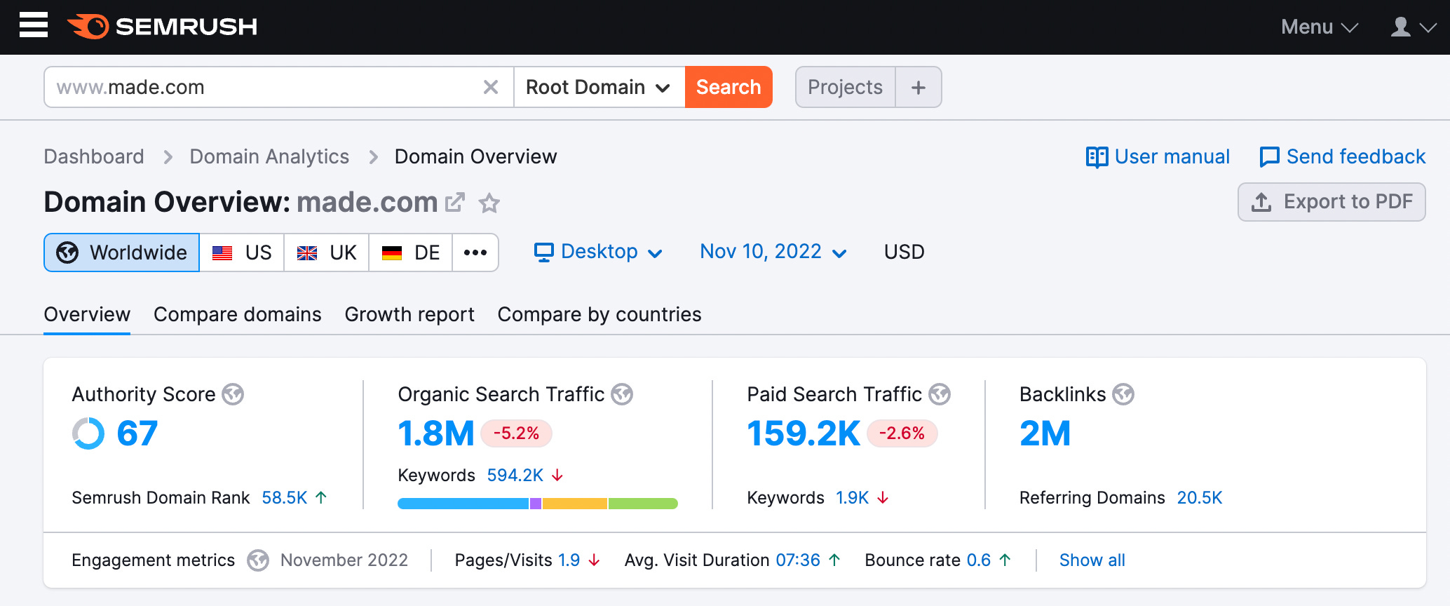 made.com currently gets 1.8 million monthly visitors organically from Google. That’s around 20 million yearly visits (for free). This is because made.com is ranking for around 600k keyword search terms on Google.