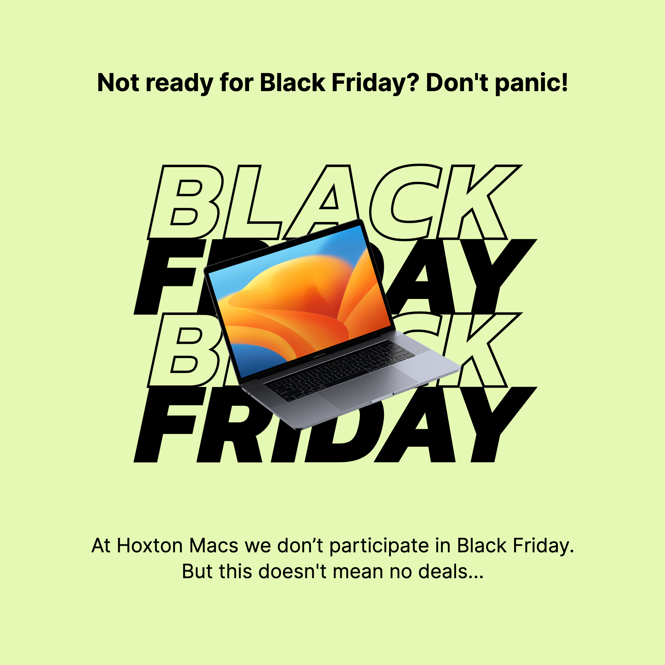 At Hoxton Macs we don’t participate in Black Friday or Cyber Monday. This means no flash sales, no limited time offers, but it doesn’t mean no ‘good deals’!